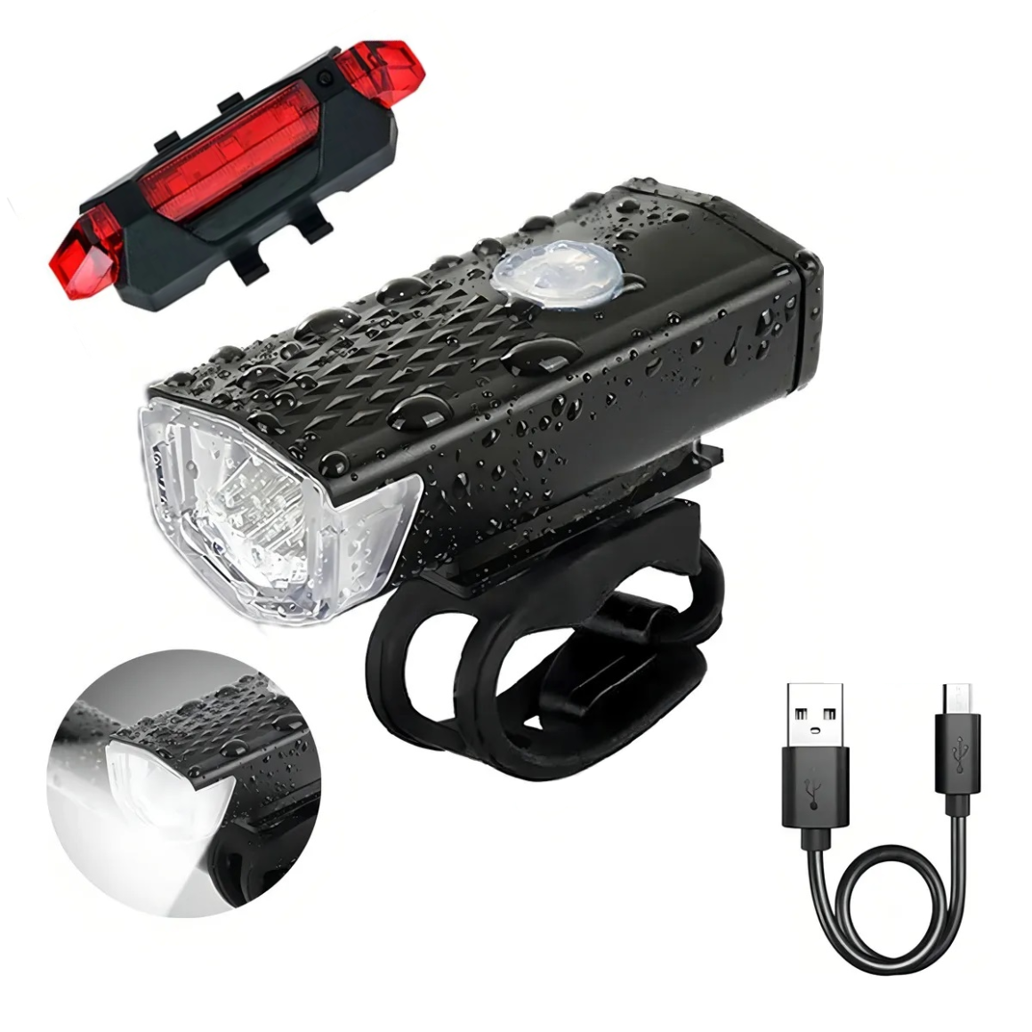 Este Kit Farol e Lanterna Bike Led Recarregável Resistente A Água é um produto