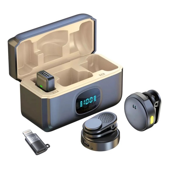 - Capacidade da Bateria: Microfone transmissor (TX): 130mAh; Estojo de