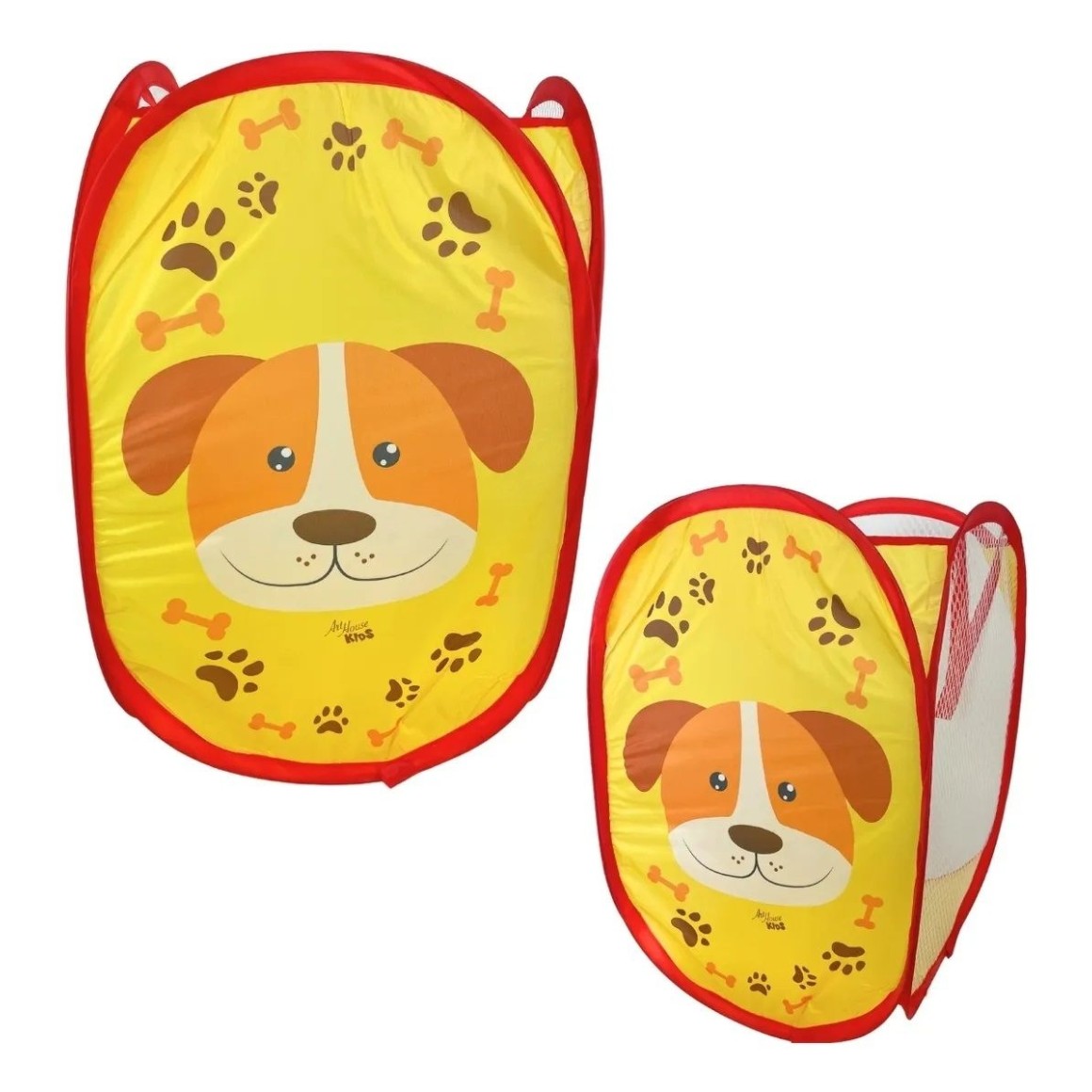 Cesto De Roupa Organizador Multiuso Tecido Dobrável Cachorro Telado