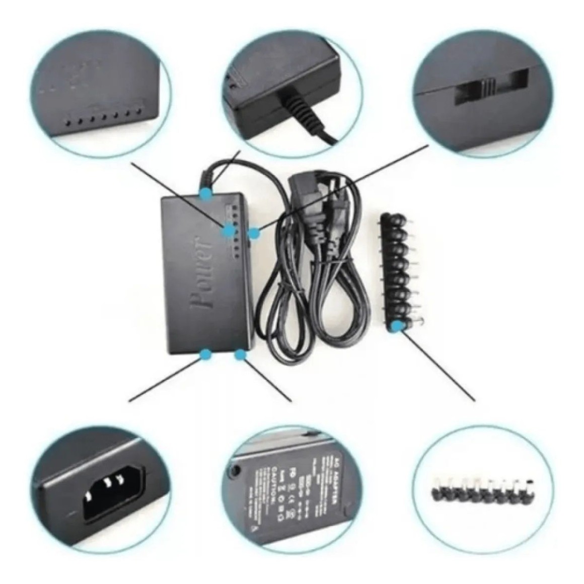 - Conectores intercambiáveis: A Fonte Universal Notebook inclui uma série de conectores diferentes que podem ser trocados para se ajustar ao conector de energia específico do seu notebook. Isso permite que você use o adaptador com uma ampla variedade de modelos de laptops.