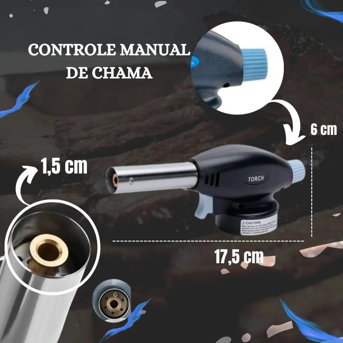 Com o maçarico você poderá dar acabamento profissional em doces, peixes, legumes, carnes e gratinados, como os melhores chefs.